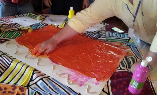 One session last week was based on the ideas in my book- Who says you’re not creative?  It was a new session with brand new exercises. One of these activities involved ‘big paint and big paper’. In my book I talk about ‘big pens for big ideas’ and this was a visual variation on that theme. I’ve been wanting to try this out in my workshops for a while but the opportunity had not arisen- until now.