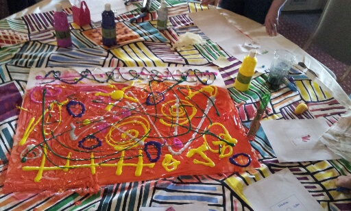 There were different degrees of messiness but everyone engaged and made their own sense- or no sense – of the process. ‘This arrow is about direction and these shapes are about the different things I could do.’ Is that an abstract artist speaking?