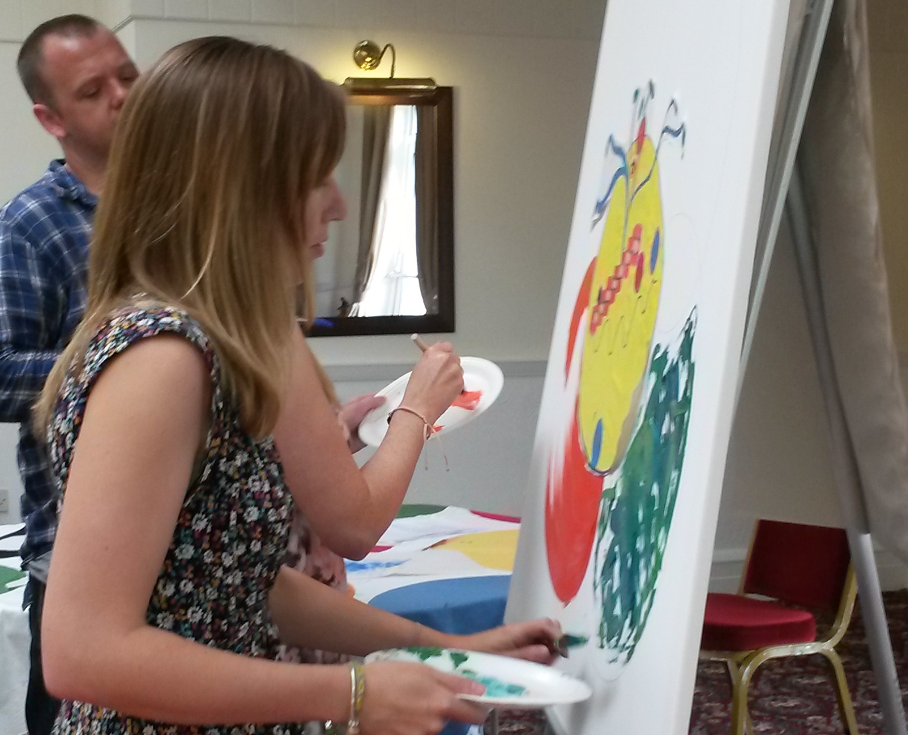 As I write this I feel quietly excited about the future. I have a new team development method that is ready to be launched. It’s been at least 2 years in the making and has been successfully trialled this summer. I’m calling it “Think through colour” as it’s all about people approaching problems/ situations/ challenges through paint and collage materials. This way of working allows people to tap into their ‘visual intelligence’ or their ‘right brain’. It’s also about people working together – ‘collaborative painting.’ The work that’s produced is not the product of a single person but the collective.
